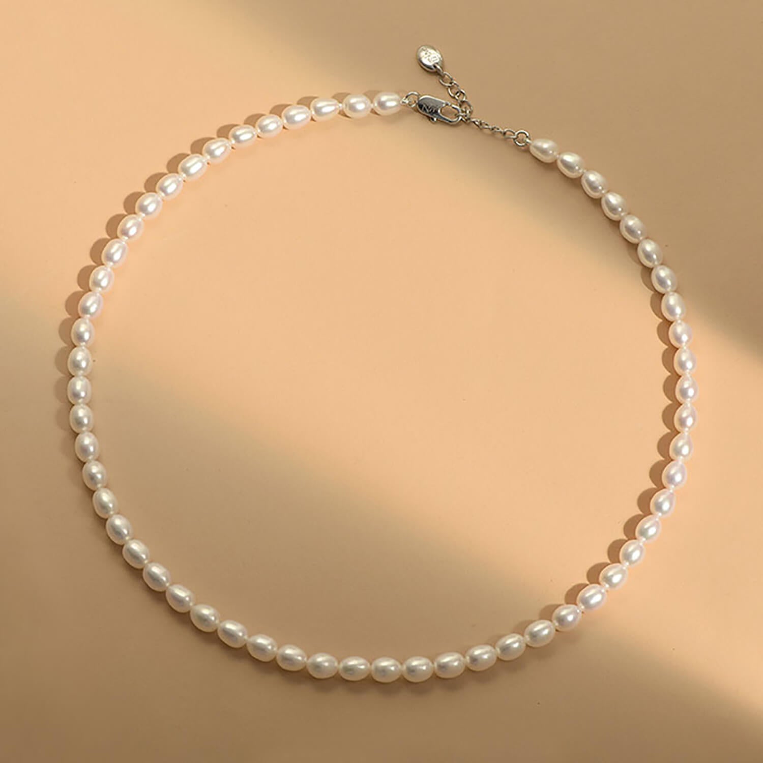 Luck Rising Freshwater Pearl Necklace for Women – High Luster Baroque Pearl Choker with 925 Silver Lobster Clasp – 3-4mm / 6-7mm Pearls, Adjustable 38+6cm Length
